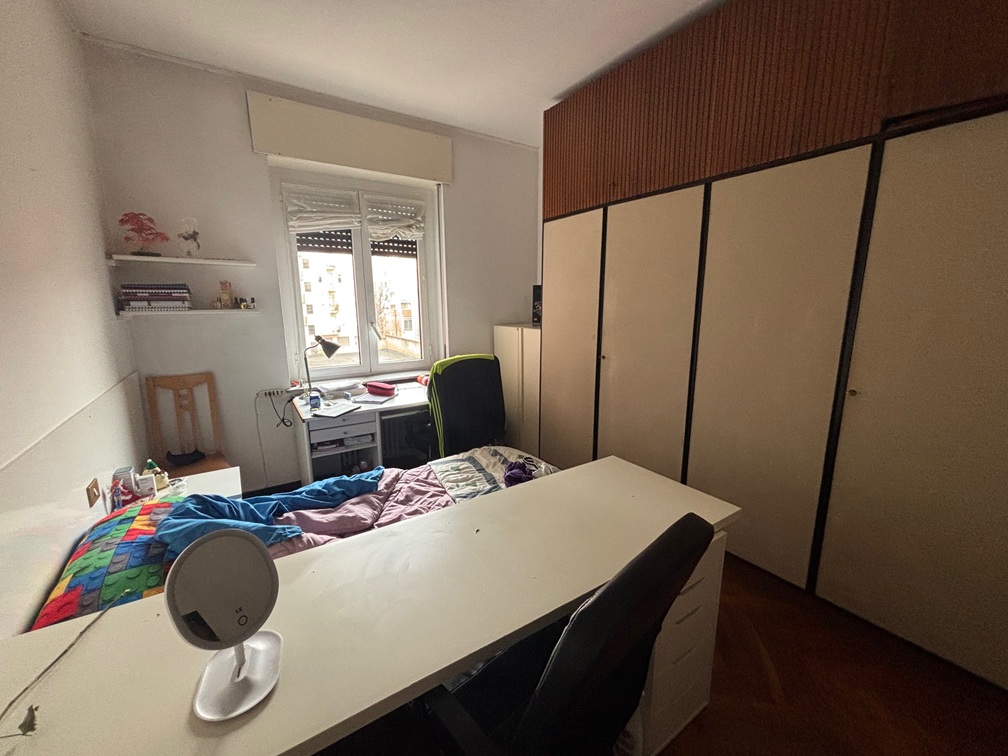 Ad.ze P.le Gorini / L.go Murani – Via Strambio In stabile civile con portineria e ascensore proponiamo trilocale composto da: ingresso, soggiorno con cucinotto, due camere, bagno e ripostiglio. Doppia esposizione (Est / Ovest) con due balconi. Completa la proprietà una cantina di pertinenza. Appartamento in buono stato con: porta blindata, infissi con doppi vetri, aria condizionata, marmette – ceramica e parquet. Libero a settembre.